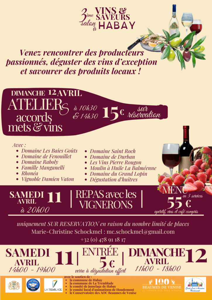 Nous avons le plaisir de vous annoncer que le Domaine Les Goubert participera au 3e Salon Vins & Saveurs à Habay !