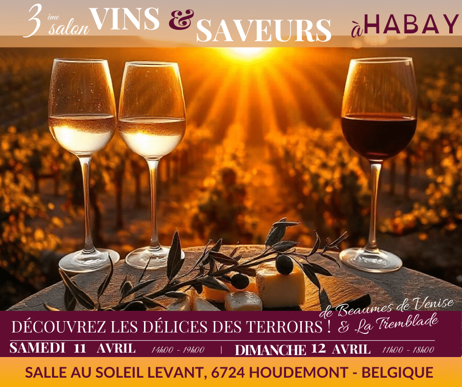 Nous avons le plaisir de vous annoncer que le Domaine Les Goubert participera au 3e Salon Vins & Saveurs à Habay ! Salle Au Soleil